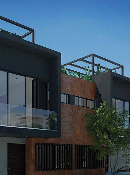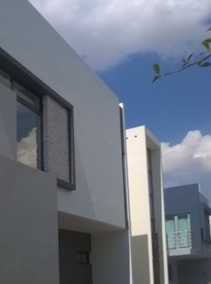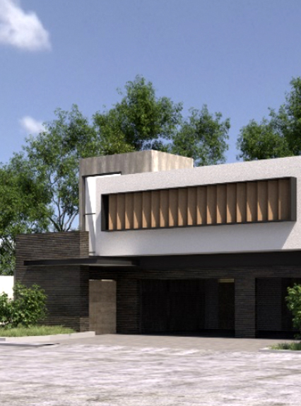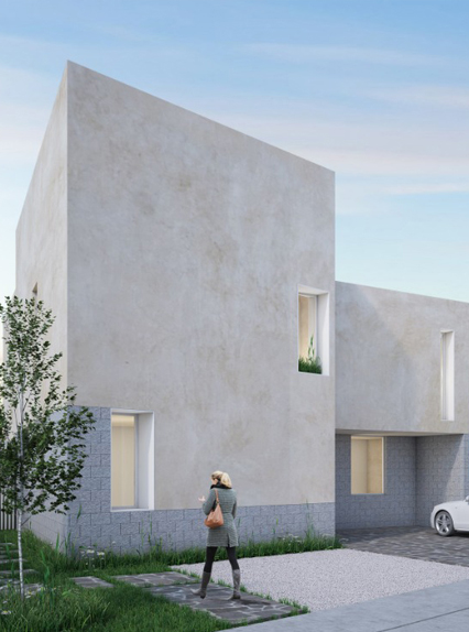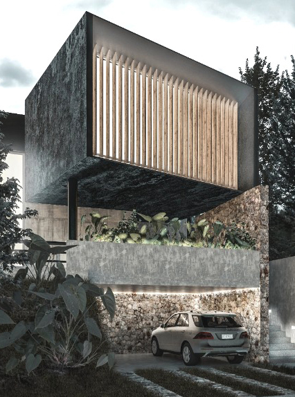 Obra Civil Habitacional. Acabados destacados: concreto blanco martelinado y chukum